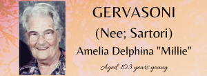GERVASONI (Nee; Sartori), Amelia Delphina “Millie”